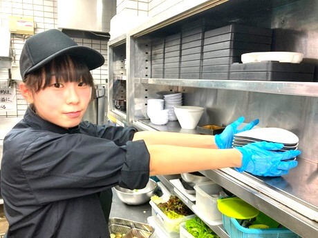 サラダの盛付けや洗い物など、